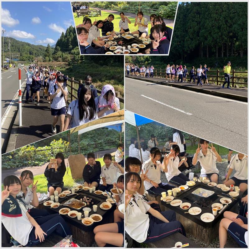 みんなで歩いた後に味わうバーベキューは格別で、お腹も心も大満足。笑顔あふれる時間となりました。この行事を通して、学年間の絆がより一層深まり、商業コース全体の団結力もパワーアップ!