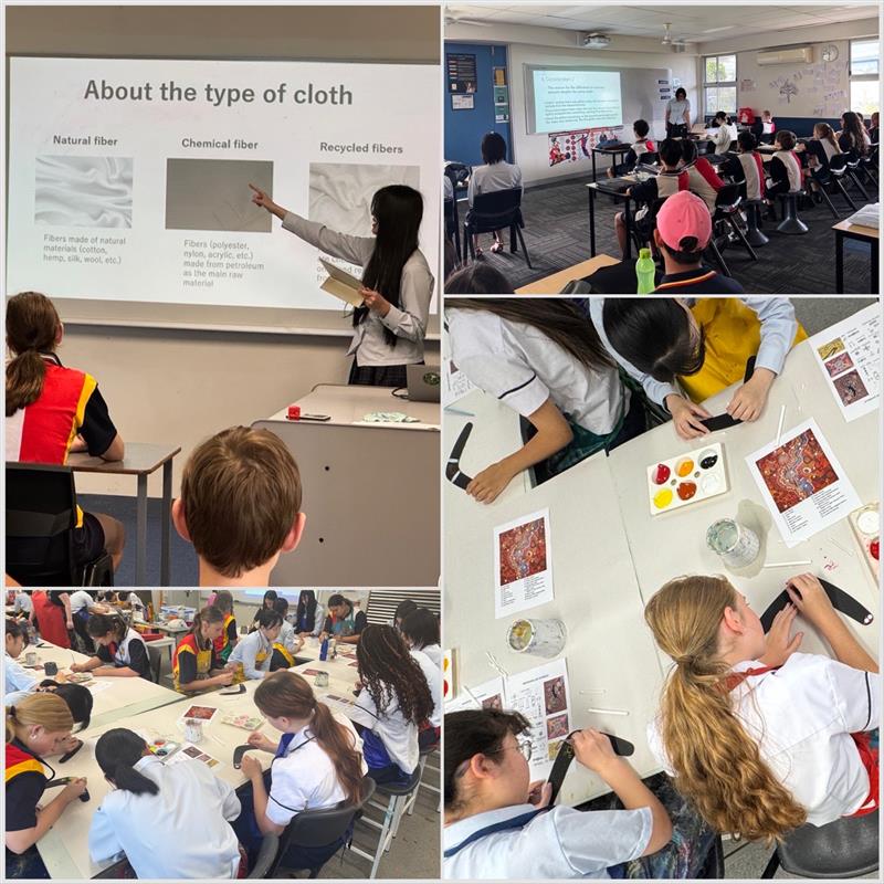 まずそれぞれのバディの授業に参加したあと、理科課題研究発表の本番を迎えました。3会場に分かれて、現地校の生徒を前に全員が発表を行いました。午後はバディと一緒にArtの授業に参加し、伝統的な独特のデザインを真似てブーメランに思い思いの文様を描き、そのあと、英語の授業でオーストラリアの生き物の特徴を英語で表現する楽しさを学びました。