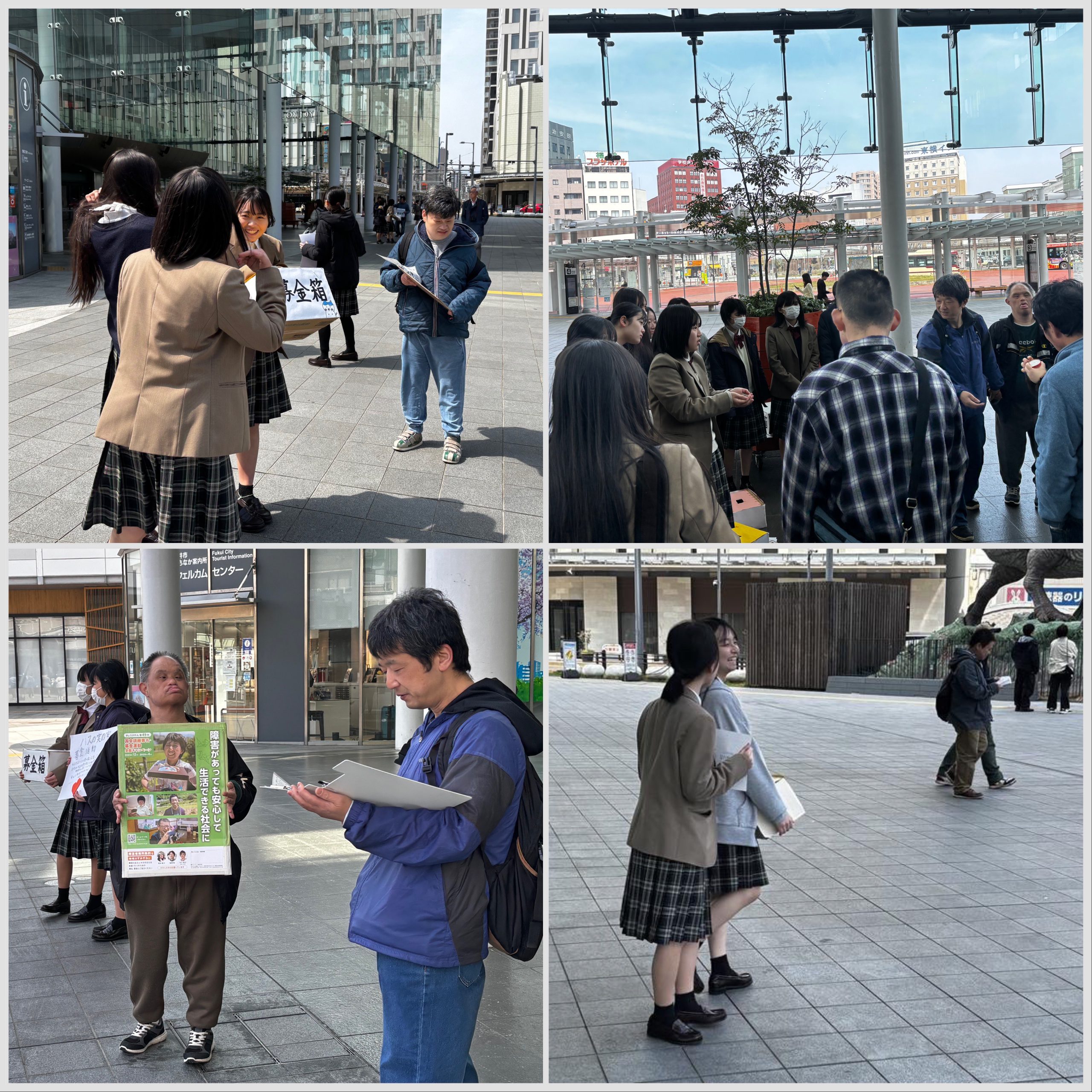 ハスの実の家の仲間たちと福井駅前で募金活動を行いました。募金活動の難しさ、そして温かさを知ることができる貴重な体験となりました。