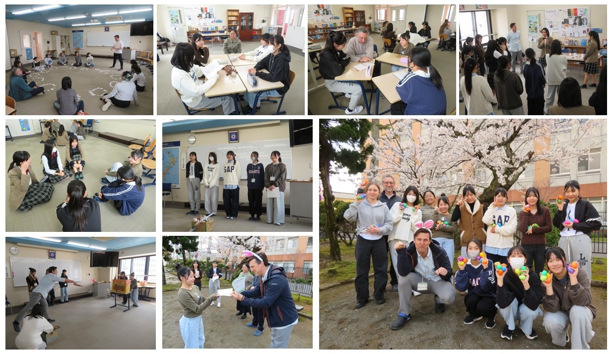 2日目は、中学校英語の復習テストや、グループで作成したゲームのプレゼンテーション、イースターエッグハントなど、さまざまな活動を行いました。また、先輩となる英語留学コースの新3年生とも交流しました。