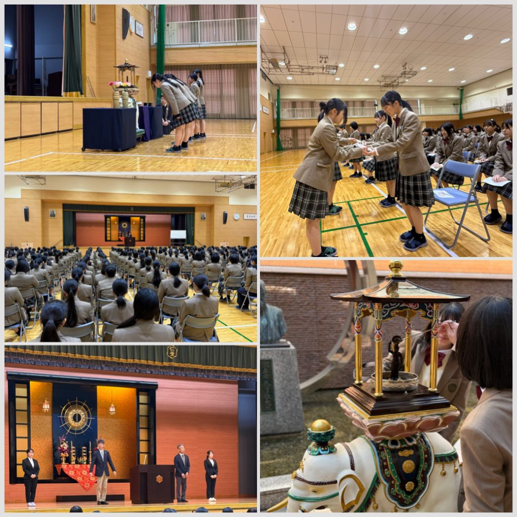4月8日(水)いよいよ新学期のスタートとなり、始業式・新任式とはなまつりが行われました。1年生にとってははじめての宗教行事となります。本校の仏教精神はこたえを与えるものではなく、目覚め(気付き)を考えるものです。私とは何かという大きな命題を考えていくことで、他者とは何か、他者にとってもまた「私」があることに気付き、仁愛の精神に基づいた優しく深い人間形成を培っていってもらいたいと願います。